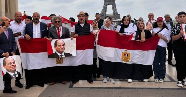 شاهد الجاليات المصرية يهتفون باسم مصر أمام برج إيفل احتفاء بزيارة الرئيس السيسى