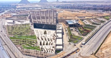 البدء في وضع القطع الأثرية داخل فتارين العرض بالقاعات الرئيسية بالمتحف الكبير