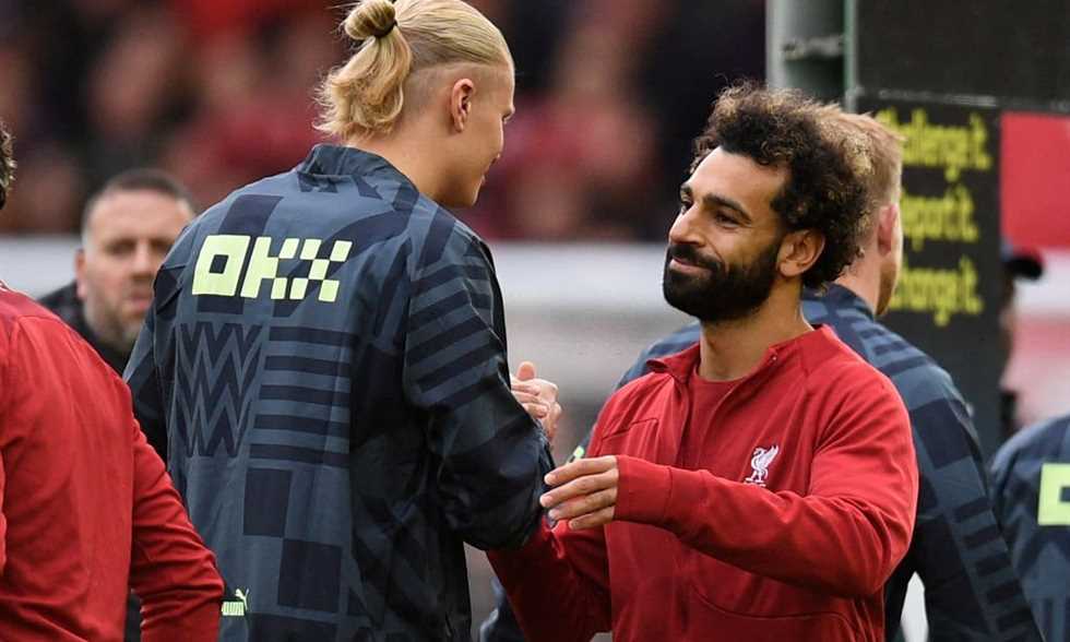 محمد صلاح مع إرلينج هالاند – ليفربول أمام مانشستر سيتي