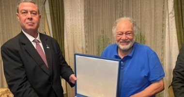 تقليد الفنان يحيى الفخرانى وسام الثقافة والعلوم والفنون من السفير الفلسطيني