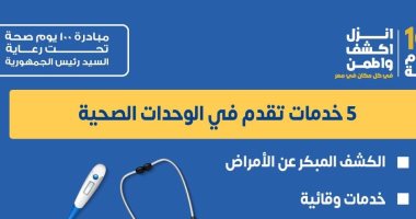 “الصحة” تكشف عن 5 خدمات هامة تقدم بالوحدات ضمن مبادرة 100 يوم صحة.. التفاصيل