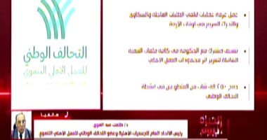 وأضاف الدكتور طلعت عبد القوي، خلال مداخلة هاتفية ببرنامج “الحياة اليوم”، مع الاعلامي محمد مصطفى شردي، على قناة الحياة، أن التحالف الوطني يعمل ليل نهار ويحقق انجازات ظهرت في مؤتمر يناير 2023، مفيدا بأن التحالف الوطني العمل الأهلي قدم الخدمات لـ35 مليون مواطن مصري من الأكثر احتياجا.