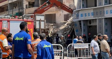 الاستعانة بمعدات ثقيلة لرفع ركام العقار المنهار في حدائق القبة