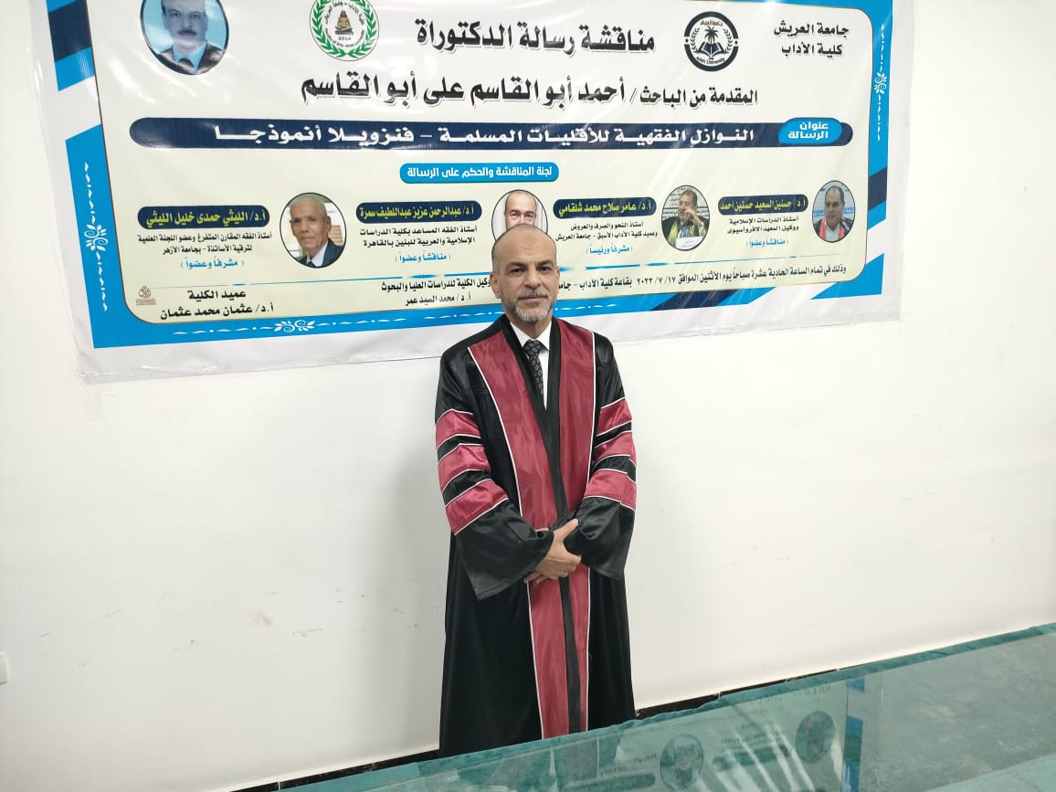 احتضنت اليوم قاعة كلية الاداب بجامعة العريش مناقشة رسالة الدكتوراه للباحث احمد ابو القاسم علي ابو القاسم