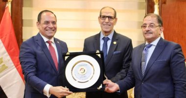 الوطنية للانتخابات تهدى رئيس النيابة الإدارية درع الهيئة التذكارى.. صور