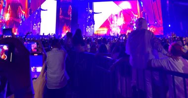 تامر حسنى يدخل حفله فى مهرجان العلمين ببدلة فيلم تاج معلق بالأحبال