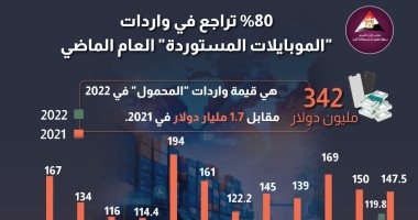 كشف مركز معلومات مجلس الوزراء أن هناك 80% تراجع فى واردات الموبايلات المستوردة العام الماضي.