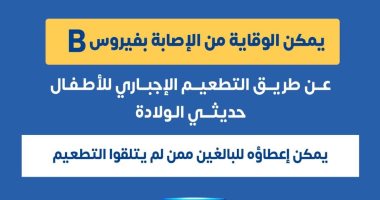 “الصحة”: يمكن الوقاية من فيروس B عن طريق التطعيم الإجبارى لحديثى الولادة