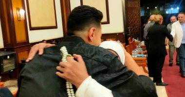 حمادة هلال وأشرف زكى ورامى صبرى فى عزاء والد مى كساب