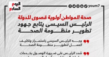 صحة المواطن أولوية قصوى.. الرئيس السيسى يتابع جهود تطوير منظومة الصحة.. إنفوجراف