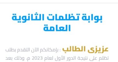 وكتبت صفحة التظلمات على موقع الوزارة: عزيزى الطالب : بإمكانك الآن التقدم بطلب تظلم على نتيجة الدور الأول للثانوية العامة لعام 2023 م، وذلك بعد دفع مبلغ 200 جنيه مصري عن المادة الواحدة من خلال أحد منافذ الدفع البنكي المخصصة لذلك” البريد المصري – فورى – وقتي – إيجي باى – سداد – ضامن – أمان -مصاري – بيي – ممكن – طلقة – موجة – خالص موبايل – أموال”.
