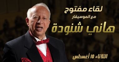تستضيف ساقية الصاوى الموسيقار الكبير هانى شنودة، فى لقاء مفتوح يتحدث فيه عن مشواره الفنى، ويقدم باقة من أجمل مقطوعاته الموسيقية المميزة، وذلك يوم الثلاثاء 15 أغسطس فى تمام الساعة 8 مساء.