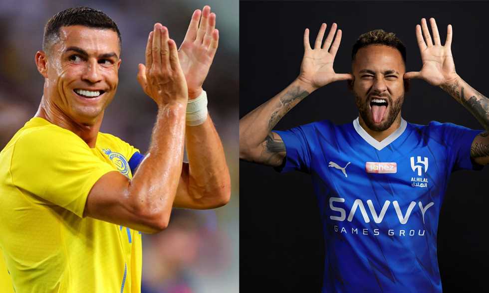 كريستيانو رونالدو الذي أطلق الشراراة بانضمامه لصفوف النصر خلال فترة الانتقالات الشتوية الماضية تلاه كريم بنزيما ورياض محرز وروبرتو فيرمينو، والآن تستطيع تكوين فريقين كاملين من النجوم سيقود رونالدو أحدهما ويقود نيمار الفريق الآخر.