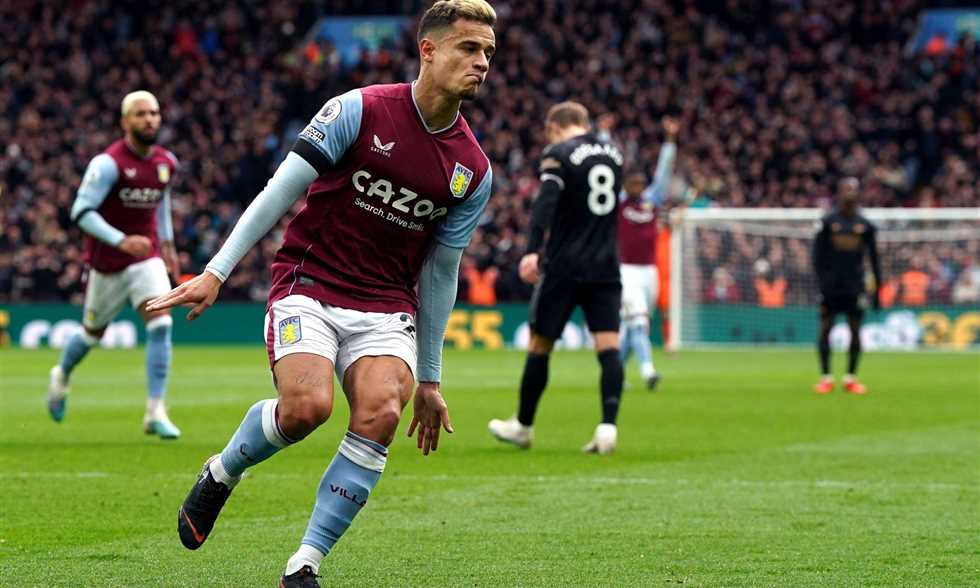 فيليبي كوتينيو يسجل ويحتفل بهدف أستون فيلا الثاني أمام أرسنال