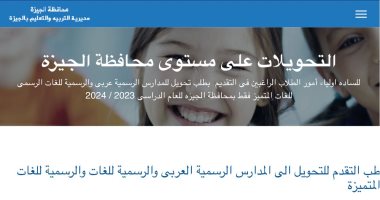 تغلق مديرية التربية والتعليم بالجيزة، غدا الجمعة الموافق 25 أغسطس 2023، باب التحويلات الإلكترونية بين المدارس الرسمية والرسمية لغات والرسمية المتميزة لغات للعام الدراسي 2023/2024، وذلك عبر موقعها الإلكتروني https://www.gizaedu.net/tran.htm