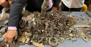 جمارك الواردات الجوية بمطار القاهرة تحبط محاولة تهريب حلى وعملات أثرية.. صور