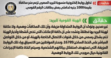 كشف المركز الاعلامى لمجلس الوزراء إنه فى ضوء ما تم تداوله من روابط إلكترونية منسوبة للبريد المصري تزعم منح مكافأة بقيمة 1000 جنيه لحاملي بعض بطاقات الرقم القومي، تواصل المركز مع الهيئة القومية للبريد، والتي نفت تلك الأنباء، مُؤكدةً أنه لا صحة لمنح مكافأة بقيمة 1000 جنيه لحاملي بعض بطاقات الرقم القومي، وأن الروابط المتداولة مزيفة، وأن تلك المكافآت وهمية، ولا علاقة لهيئة البريد بها مُطلقاً، مشددةً على أن كافة الإعلانات التي تخص أنشطة وأخبار الهيئة تتم بشكل رسمي من خلال قنوات الاتصال الخاصة بالهيئة، أو من خلال التواصل المباشر على الخط الساخن 16789، محذرةً المواطنين من الانسياق وراء تلك الروابط المزيفة، التي تستهدف استغلال بياناتهم الشخصية، وسيتم اتخاذ كافة الإجراءات القانونية حيال مروجي تلك الروابط الوهمية.