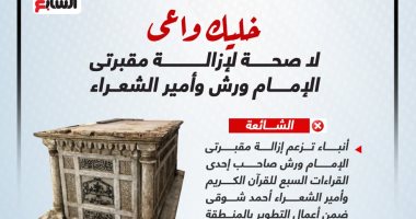 خليك واعى.. لا صحة لإزالة مقبرتى الإمام ورش وأمير الشعراء.. إنفوجراف