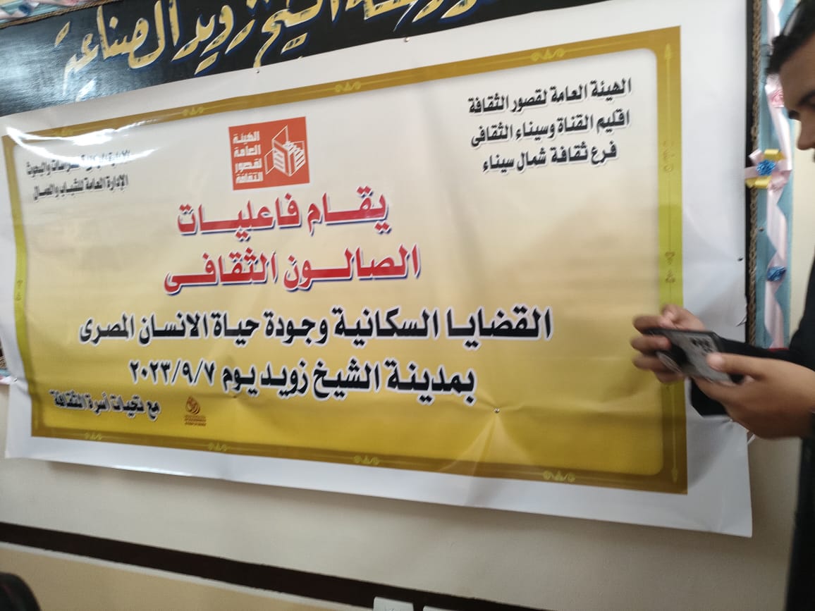 جري الصالون بحضور عمرو بسيوني رئيس الهيئة العامة لقصور الثقافة وامل عبد الله رئيس إقليم القناة وسيناء الثقافي وأشرف المشرحاني رئيس فرع ثقافة شمال سيناء، سعيد عرادة رئيس مركز ومدينة الشيخ زويد، نوال سالم، مقرر فرع المجلس القومي للسكان في شمال سيناء.