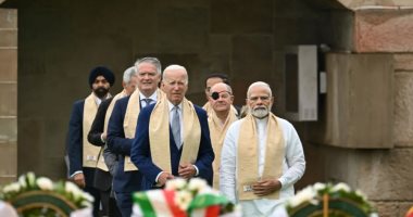 وشوهد مودى وهو يضع الوشاح القطنى حول عنق الرئيس الأمريكى جو بايدن، ورئيس الوزراء البريطانى ريشى سوناك وآخرين، وهم يلتقطون الصور أمام خلفية كبيرة لمعبد سابارماتى فى ولاية جوجارات، فى واحد من المنازل العديدة التي يمتلكها مودى عبر الهند.