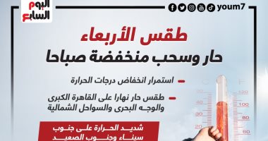 طقس الأربعاء.. حار نهارا ولطيف ليلا والعظمى بالقاهرة 32 درجة.. إنفوجراف