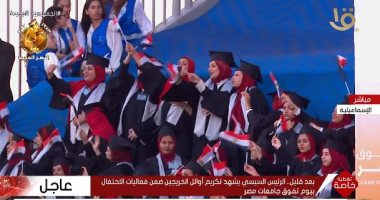 أوائل الخريجين يرفعون أعلام مصر خلال تكريمهم بحضور الرئيس السيسي