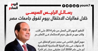رسائل الرئيس السيسى خلال فعاليات الاحتفال بيوم تفوق جامعات مصر.. إنفوجراف