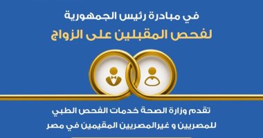 قالت وزارة الصحة والسكان إن مبادرة رئيس الجمهورية لفحص المقبلين علي الزواج تقدم خدماتها للمصريين والأجانب المقيمين فى مصر .