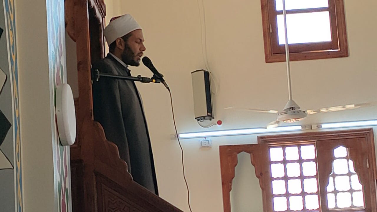 وعقب الافتتاح قام المحافظ ومرافقيه، بأداء صلاة الجمعة في المسجد حيث تناولت خطبة الجمعة موضوع «مظاهر رحمة النبي-صلي الله عليه وسلم-بأمته»، حيث أكد خطيب الجمعة ان الرحمة من عظيم الاخلاق التي تخلق بها سيدنا محمد صلي الله عليه وسلم، وقد تجلت الرحمة في حياة النبي في اعلي صورها وابهي معانيها واتسعت افاقها لتشمل جميع امته بل جميع المخلوقات، مشيرًا الي أن النبي كان رحيما بالضعفاء وذوي الهمم واليتامى والمساكين يوصي برحمتهم واكرامهم ويسعي دوما في قضاء حوائجهم، كما كان رسولنا الكريم رحيما بالعصاة والمذنبين يأخذ بأيديهم ويرشدهم الي طريق الحق.