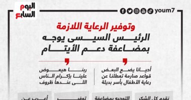 وفى هذا الإنفوجراف نرصد أبرز توجيهات الرئيس لتوفير الدعم للأيتام.