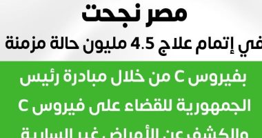 – إجمالى من تم علاجهم من فيروس سى 4.5 مليون حالة.