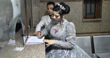 عريس بمنشأة القناطر يصطحب عروسه لتوثيق توكيل تأييد ترشح الرئيس السيسى.. صور