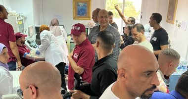 إقبال كثيف من أهالى الجيزة للتبرع بالدم لدعم الأشقاء الفلسطينيين.. صور