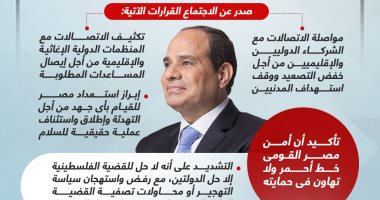 أمن مصر خط أحمر.. مجلس الأمن القومى برئاسة السيسى يبحث تطورات التصعيد بغزة (إنفوجراف)