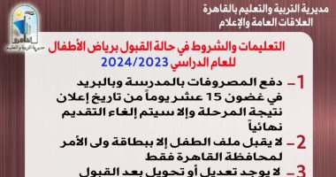 وأكدت مديرية التربية والتعليم بالقاهرة، أنه فى حالة قبول الطفل بالمرحلة الأولى، يتم اتباع التعليمات الاتية لاستكمال قبول الطفل (ولا يتم القبول بدونها):
