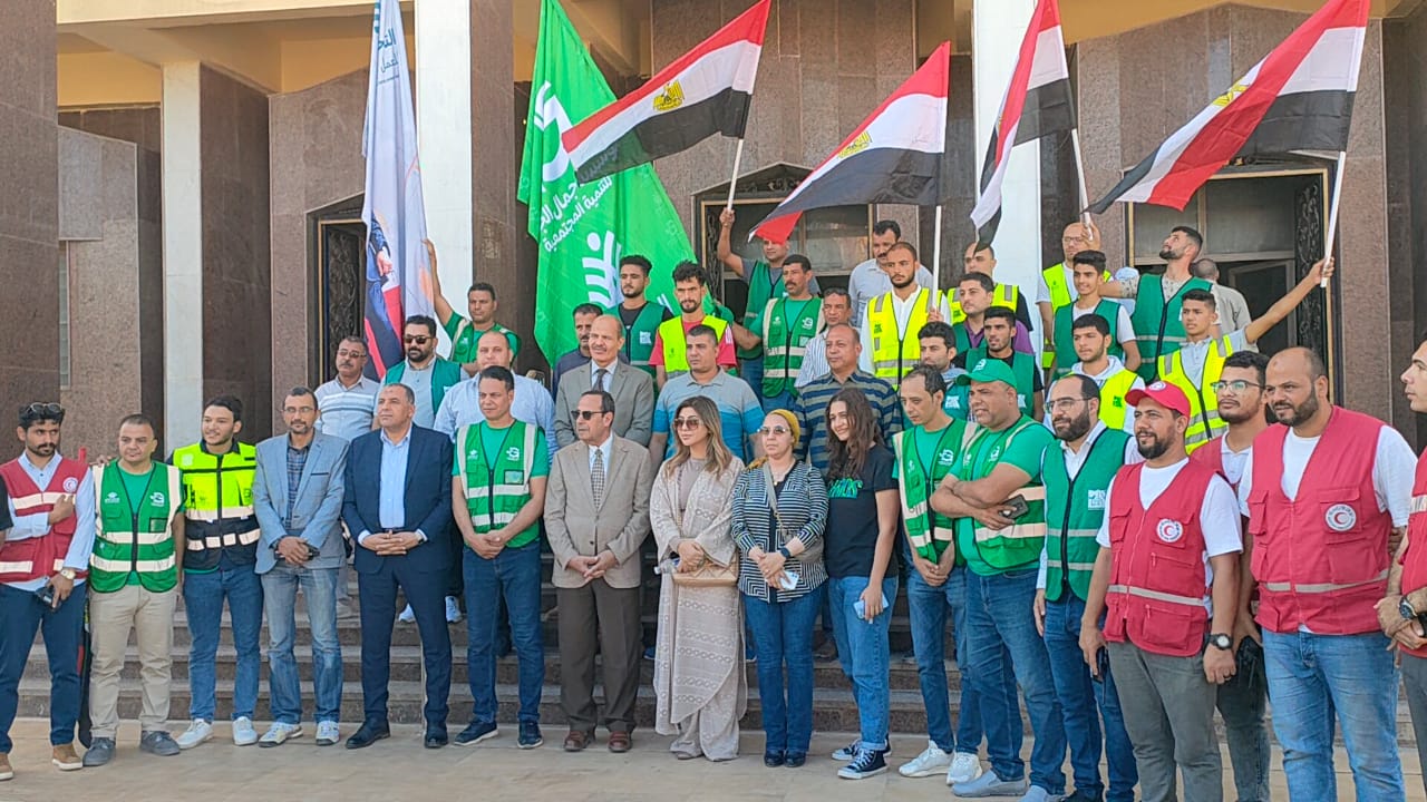 تفقد اللواء دكتور محمد عبد الفضيل شوشة، محافظ شمال سيناء، يرافقه العميد أسامه الغندور، سكرتير عام المحافظة، قافلة مساعدات التحالف الوطني للعمل الأهلي التنموي، خلال وصولها الي مدينة العريش.
