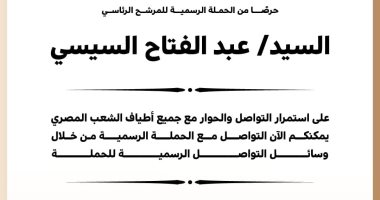 وأوضحت الحملة عبر صفحتها الرسمية، “حرصًا من الحملة الرسمية للمرشح الرئاسي عبد الفتاح السيسي على استمرار التواصل والحوار مع جميع أطياف الشعب المصري، يمكنكم الآن التواصل مع الحملة الرسمية من خلال وسائل التواصل الرسمية للحملة.. يسعدنا تواصلكم معنا