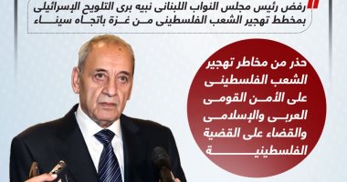 رئيس مجلس النواب اللبنانى: مخطط تهجير الفلسطينيين إلى سيناء خطر على الأمن القومى العربى.. إنفوجراف