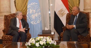 جلسة مباحثات بين وزير الخارجية وجوتيريش فى قصر التحرير حول غزة.. صور