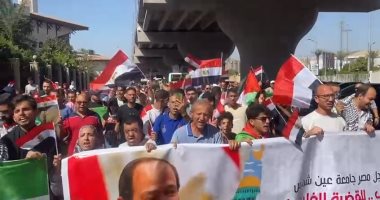 طلاب عين شمس يشاركون فى مسيرة تضامنية بالمنصة للتنديد بعدوان إسرائيل على غزة