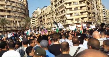 مسيرة فى ميدان التحرير لتأييد الموقف المصرى والتنديد بجرائم الاحتلال فى غزة
