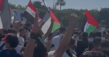 ويشارك مئات المواطنين في المسيرة بشارع النصر أمام المنصة، تضامنا مع الشعب الفلسطيني، تعبيرا عن الرفض التام لقتل الأبرياء في قطاع غزة.