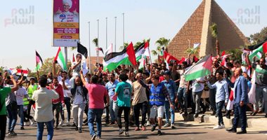 وحمل المواطنون أعلام مصر وفلسطين، في جمعة تحيا مصر لدعم الرئيس عبد الفتاح السيسى لحماية أمن مصر القومي واتخاذ إجراءات لدعم القضية الفلسطينية.