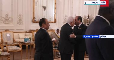الرئيس السيسى يستقبل نظيره الفلسطينى لدى وصوله مقر انعقاد قمة القاهرة للسلام