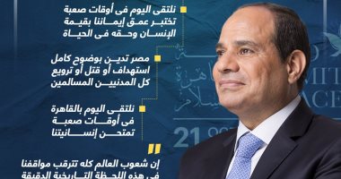 وكان الرئيس السيسى استهل كلمته بقوله:”نلتقى اليوم بالقاهرة، فى أوقاتٍ صعبة.. تمتحن إنسانيتنا، قبل مصالحنا.. تختبر عمق إيماننا، بقيمة الإنسان، وحقه فى الحياة.. وتضع المبادئ، التى ندعى أننا نعتنقها، فى موضع التساؤل والفحص.وأقول لكم بصراحة.. أن شعوب العالم كله، وليس فقط شعوب المنطقة.. تترقب بعيون متسعة.. مواقفنا فى هذه اللحظة التاريخية الدقيقة، اتصالًا بالتصعيد العسكرى الحالى، منذ السابع من أكتوبر الجارى، فى إسرائيل والأرض الفلسطينية”.