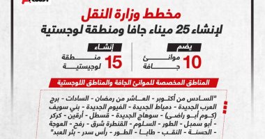 مخطط وزارة النقل لإنشاء 25 ميناء جافا ومنطقة لوجستية.. تفاصيل
