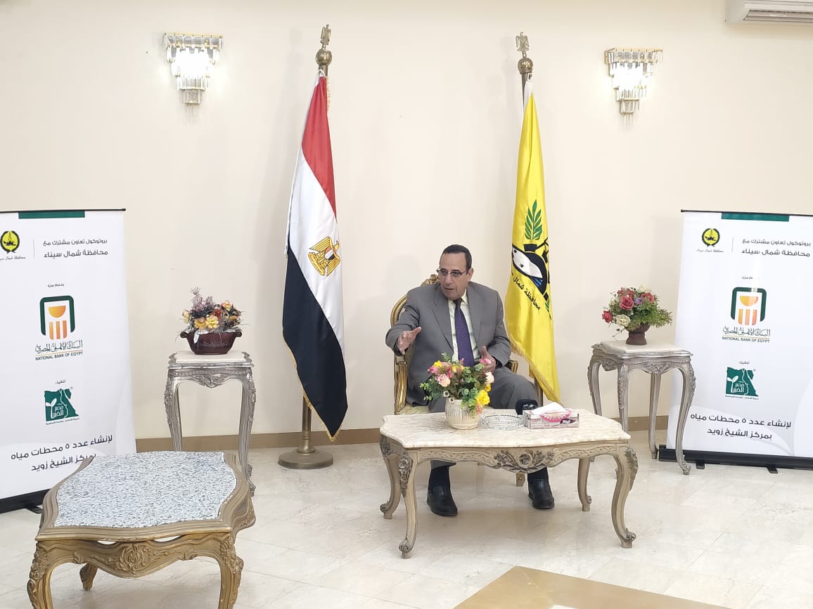وجه المحافظ الشكر لوزيرة التضامن الاجتماعي على تخصيص المبالغ اللازمة لأنشاء محطات وابار للمياه في القري العائدة بالشيخ زويد، كما وجه الشكر لمؤسسة مصر الخير علي الجهود المبذولة في شمال سيناء، مطالبًا مدير البنك الأهلي بالعريش بنقل تحياته الي رئيس مجلس إدارة البنك الأهلي للتعاون مع المحافظة ومع محافظات الحدودية.