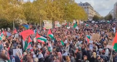 مظاهرات حاشدة فى العاصمة الفرنسية باريس تضامنا مع غزة.. فيديو
