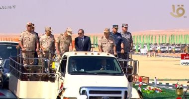 الرئيس السيسي يتفقد اصطفاف تفتيش حرب الفرقة الرابعة المدرعة فى السويس