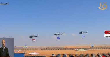 شهدت إجراءات تفتيش حرب الفرقة الرابعة المدرعة بالجيش الثالث الميداني في السويس، بحضور الرئيس عبد الفتاح السيسي، عرضا للقوات الجوية، والتى حملت علم مصر وعلم القوات المسلحة.